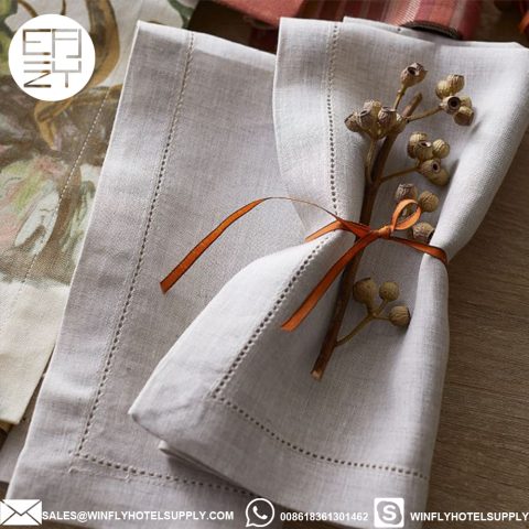 Hemstitch napkins made of 100% pure linen. Wholesale linen hemstitch napkins with factory price and low minimum order quantity