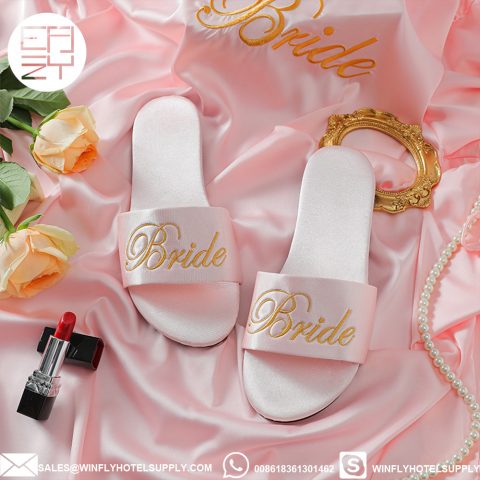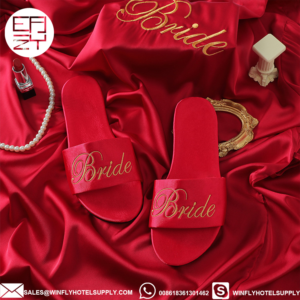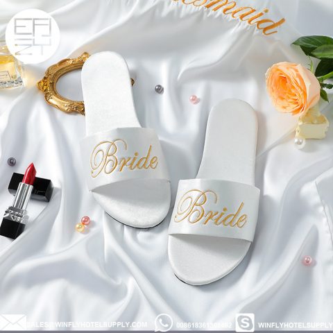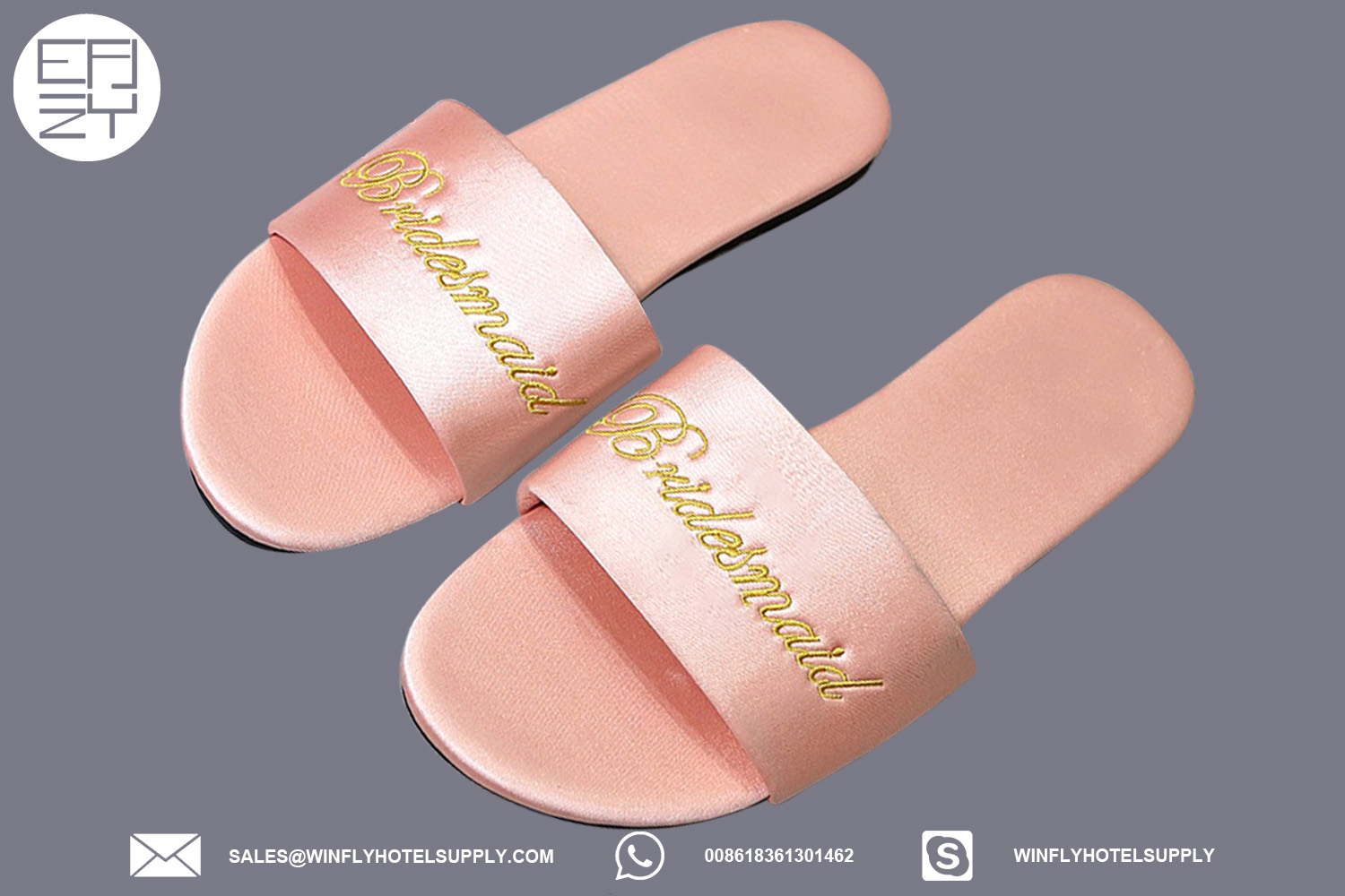 Custom Wedding Slippers in colored Satin fabric. Wholesale luxury Personalized Satin Slippers for Wedding.