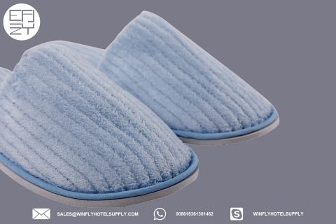 Sky blue Stripe coral velour hotel slipper