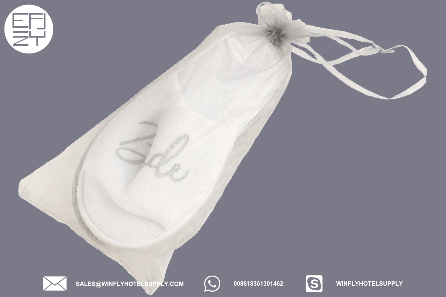 Personalized printed logo wedding slippers in organza bag